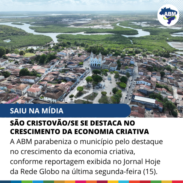A Associação Brasileira de Municípios (ABM) parabeniza o município de São Cristovão, em Sergipe, pelo destaque no crescimento da economia criativa, conforme reportagem exibida no Jornal Hoje da Rede Globo na última segunda-feira (15). O município se destacou como o grande impulsionador do setor em Sergipe, que registrou um aumento de 28% em 2023, o…