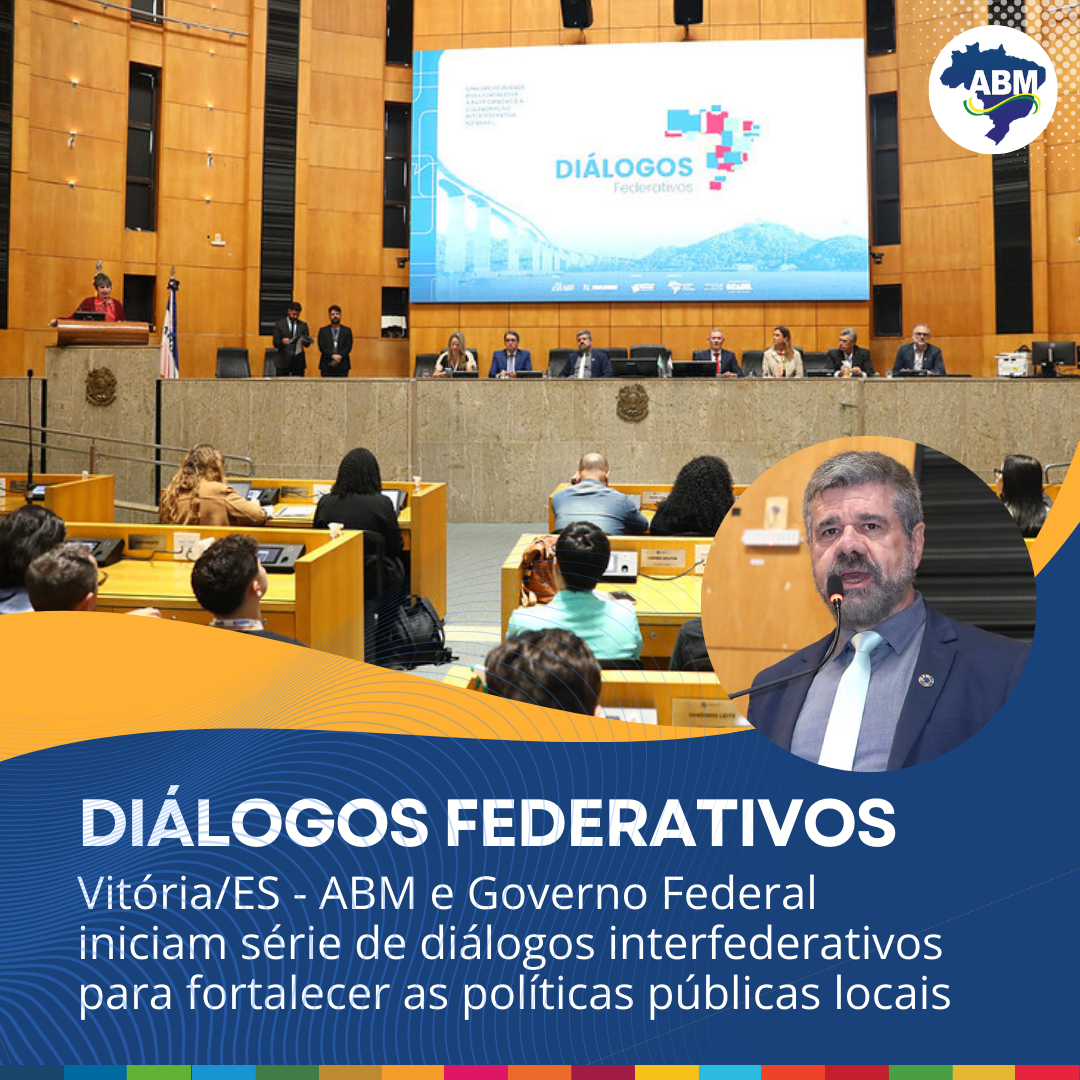 Vitória/ES, 15 de maio de 2025 – A Associação Brasileira de Municípios (ABM), em parceria com a Secretaria de Relações Institucionais da Presidência da República (SRI/PR), deu início nesta quinta-feira (15) à série “Diálogos Federativos”, com o objetivo de ampliar a participação de gestores locais na construção de políticas públicas.O primeiro encontro ocorreu na Assembleia Legislativa do Espírito Santo, em Vitória, e reuniu mais de 150 gestores públicos representantes da União, dos estados e dos municípios.