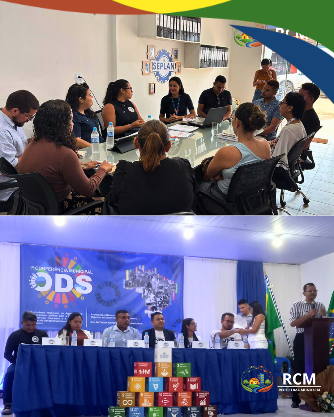 A visita técnica coincidiu com a realização da Conferência Municipal dos Objetivos de Desenvolvimento Sustentável de Jacareacanga, o que ampliou o alcance da missão. Os dois técnicos do projeto Indielle Karine e Dany Silberman participaram da palestra magna do evento, enquanto Indyamara Massaro atuou em um dos eixos temáticos da conferência, contribuindo para a definição de metas locais de desenvolvimento sustentável. A ocasião foi também utilizada para formalizar a implantação do projeto RCM no território e apresentar a metodologia do projeto Rede Clima Municipal, desde a Análise de Risco e Vulnerabilidade Climática até a elaboração dos Objetivos Municipais de Adaptação e do Plano Local de Ação Climática.