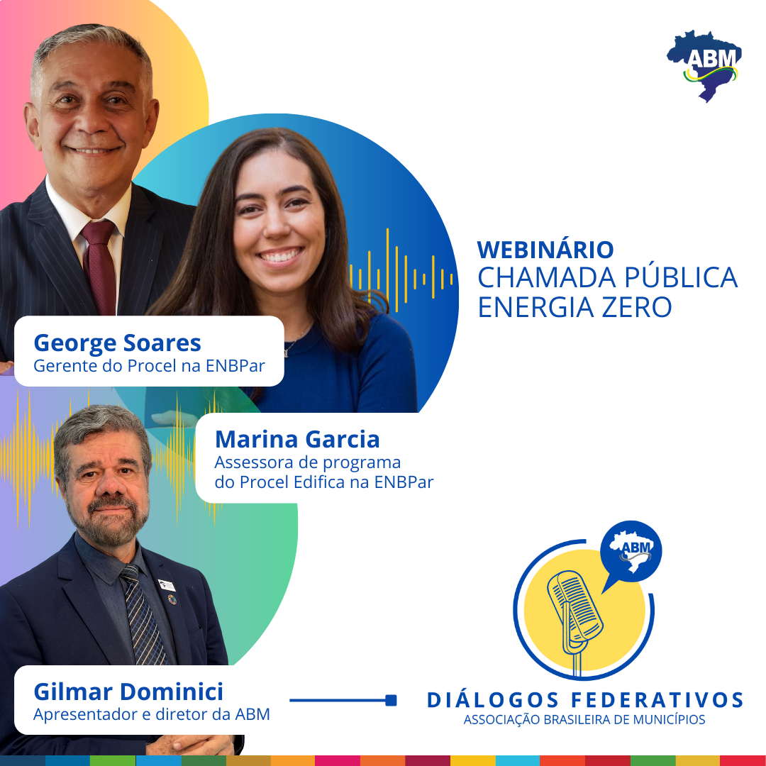 A Associação Brasileira de Municípios (ABM), em parceria com o Ministério de Minas e Energia e a Empresa de Participações em Energia Elétrica S.A. (ENBPar), realizará no dia 9 de abril, às 15h, um webinário para apoiar as equipes municipais a acessar os recursos da Chamada Pública “Energia Zero em Prédios Públicos”, que disponibiliza R$100 milhões a fundo perdido para reformas em edificações municipais. A transmissão ao vivo marcará a estreia da segunda temporada do podcast “Diálogos Federativos”, iniciativa da ABM.